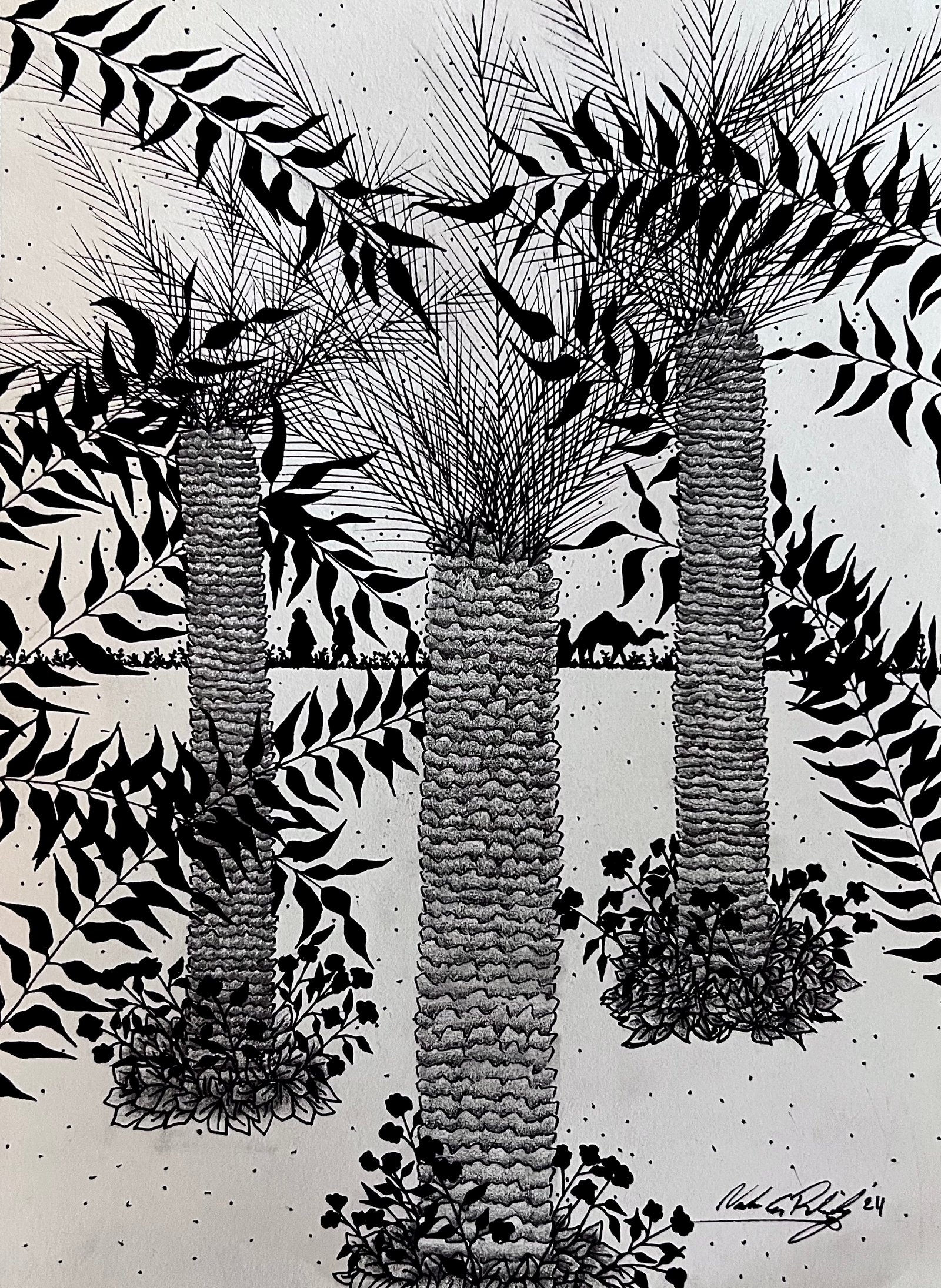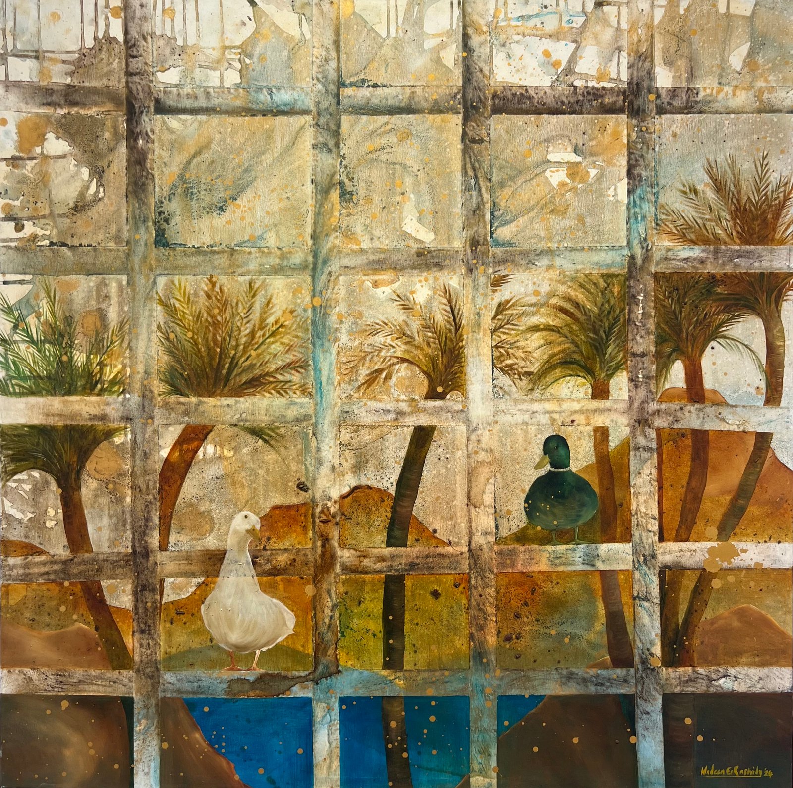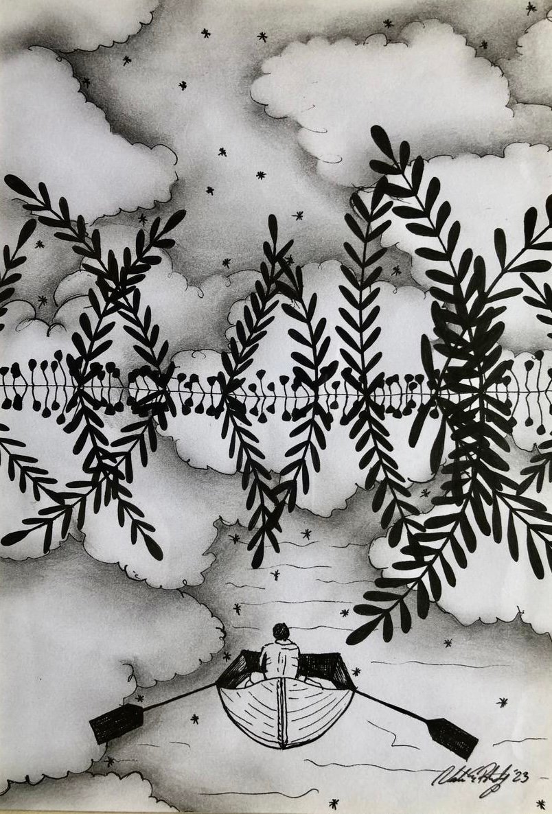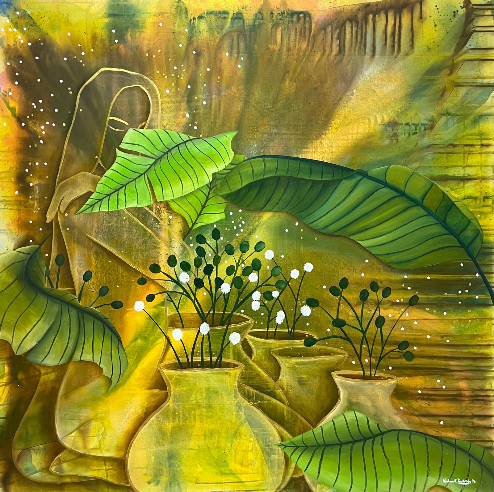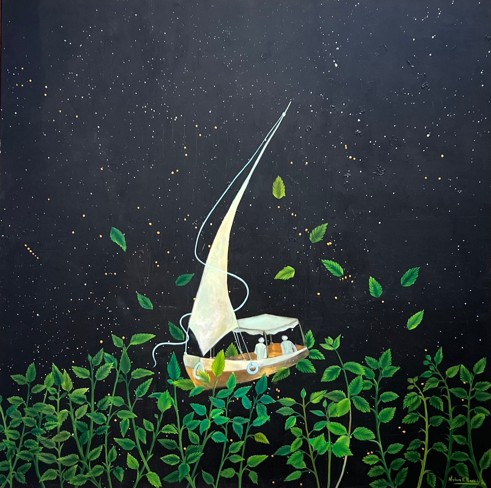 Each canvas tells a tale inspired by the myriad narratives that flow along the banks of the Nile, weaving a tapestry of human experience and connection. Though we may come from different places and belong to different stories, we are all the same. We all laugh. We all cry. We all have pain. And we all have something that keeps us going. Nadeen's paintings serve as a poignant reminder of our shared humanity. As the Nile winds its way through history, it becomes a humble yet powerful symbol of our interconnectedness uniting us in a collective journey of discovery and belonging.